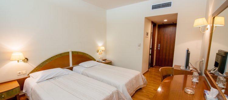 Natural earth tones in colors. Wooden floor, wooden furniture. The rooms are ideal for the traveler, who travels for business or pleasure. The bathrooms are made with materials of excellent quality, with excellent amenities. The rooms have two single beds with exceptional anatomic mattresses. The rooms can accommodate up to two adults and an infant (in a baby cot).